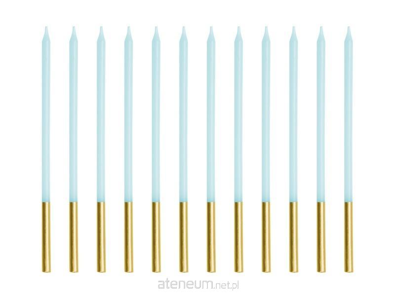 Świeczki urodzinowe gładkie w kolorze jasnobłękitnym, wysokość ok. 14 cm. Zestaw zawiera 12 świeczek.(1 op. / 12 szt.)