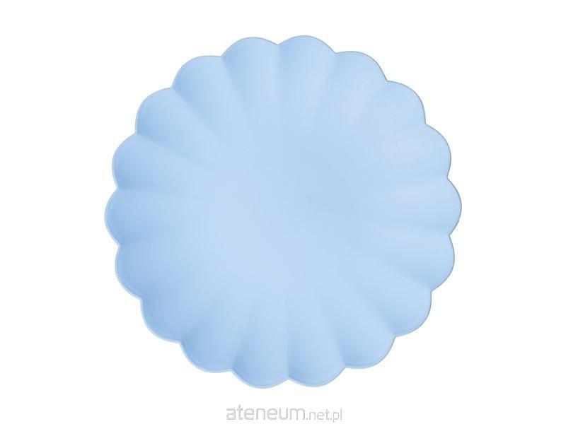 Talerzyki plastikowe Falbanka w kolorze błękitnym, wymiary ok. 22 x 22 cm. Produkt wielokrotnego użytku.(1 op. / 4 szt.)