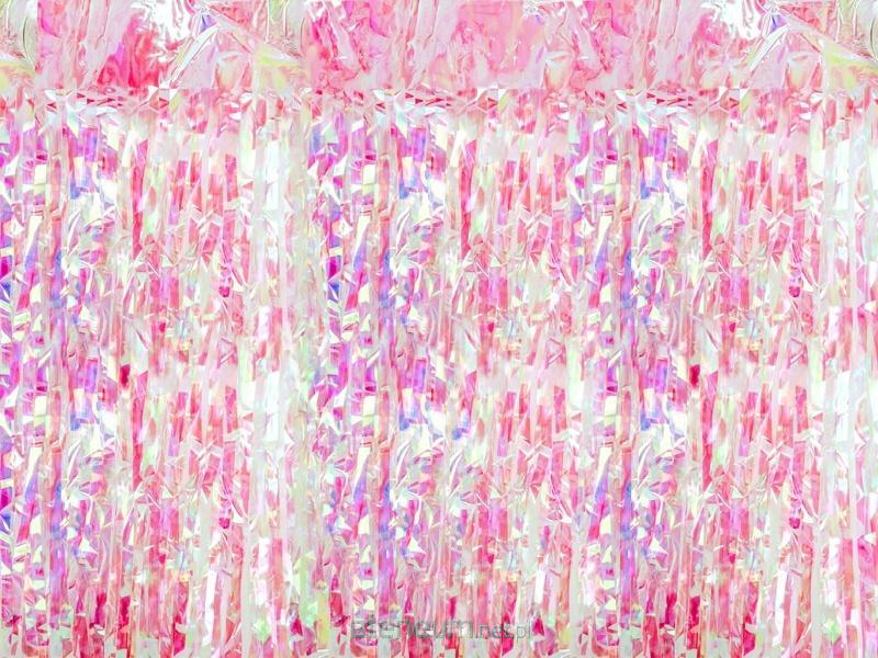 Kurtyna Party w kolorze opalizującym różowym, szerokość ok. 100 cm, wysokość ok. 200 cm.