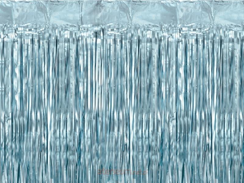 Kurtyna Party satynowa w kolorze niebieskim, szerokość ok. 100 cm, wysokość ok. 200 cm.