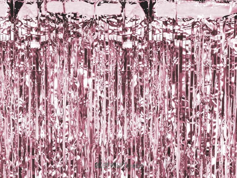 Kurtyna Party metalizowana w kolorze różowego złota, szerokość ok. 100 cm, wysokość ok. 200 cm. Wykonana z folii o grubości 23 um.