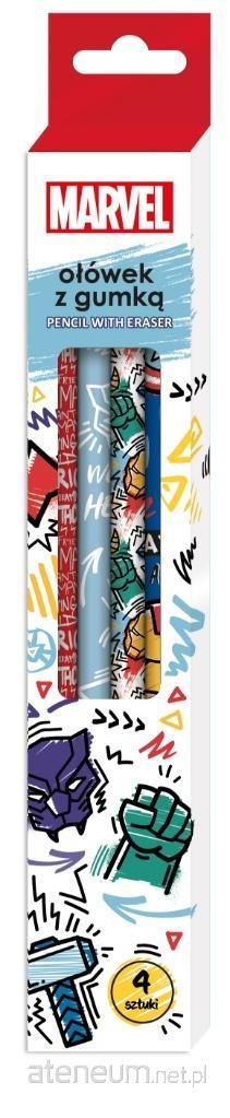 Ołówki drewniane z gumką. 4 szt w kartoniku.