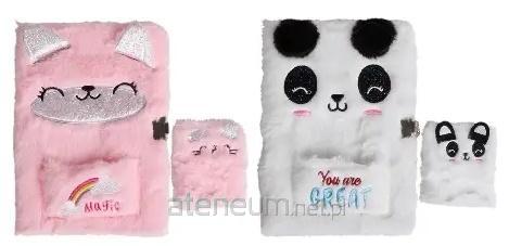 Zestaw pluszowych notesów A5 (z kłódką) i A7 kotki / pandy