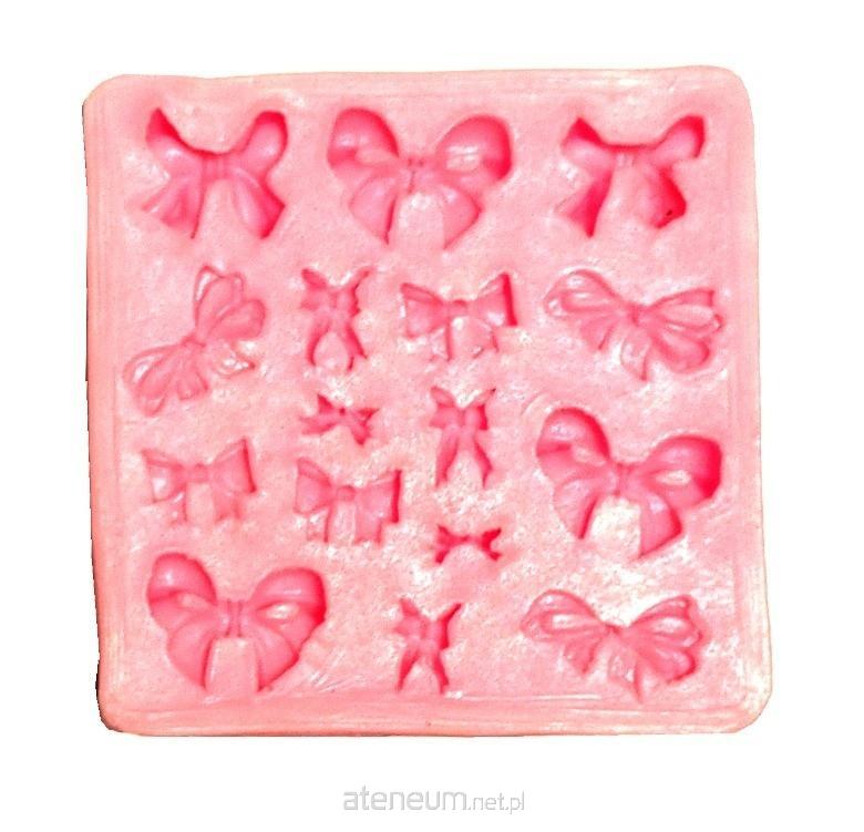 Forma silikonowa wielkości 6,8 cm x 6,8 cm do odlewów z gipsu, mas plastycznych, plasteliny, modeliny, mas cukierniczych itp.Z formy jest możliwość odlania lub stworzenia 16 elementów w kształcie kokardki.