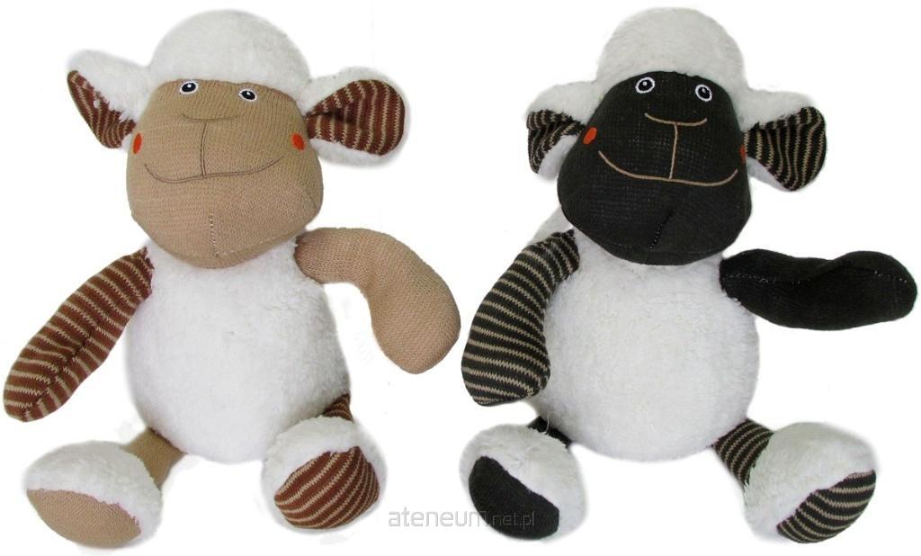 Maskotka owieczka o wielkości całkowitej 30cm, siedząc 23cm. Ładne kolory, nietypowy wzór. Cena za sztukę.