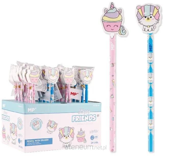 Ołówek HB z gumką w kształcie Happy frends MP 24szt