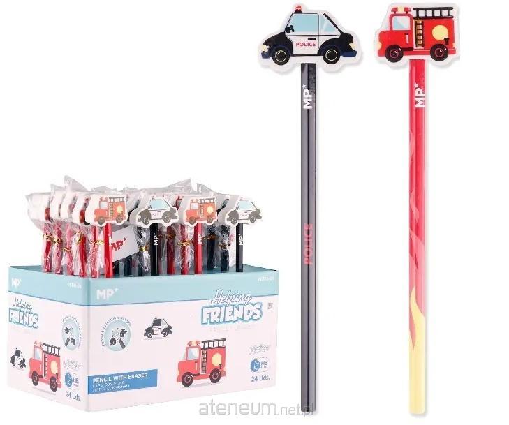 Ołówek HB z gumką w kształcie pojazdów policji i straży MP 24szt