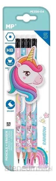 Ołówek sześciokątny HB z dodatkową gumką - Jednorożec 4szt