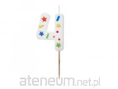 Świeczka urodzinowa 4 biała konfetti 5.5cm