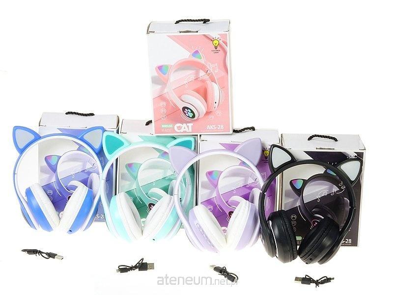 słuchawki bezprzewodowe, ze światłem, z uszami, Bluetooth, kabel USB
