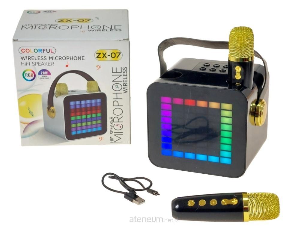 głośnik kwadratowy ze światłem, 2 mikrofony, 16x14x13cm