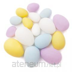 Elegancki zestaw delikatnie nakrapianych jajek z zawieszką, w odcieniach delikatnych pasteli.