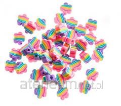 Koraliki to mix losowych kolorów takich jak żółty, zielony, pomarańczowy, różowy, fioletowy, czerwony.