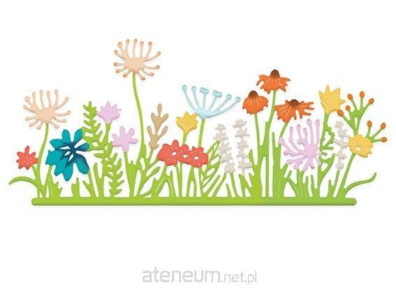 Wykrojnik pojedynczy z motywem kwietnej łąki do tworzenia unikatowych prac z papieru, tektury i pianki.