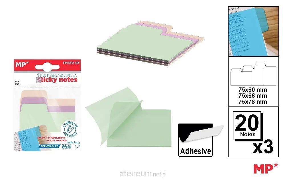 Karteczki samoprzylepne przezroczyste 75x60mm 20x3szt./opak