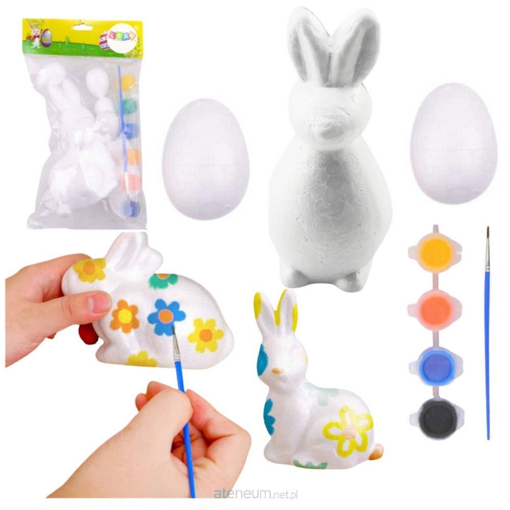 ZESTAW DO MALOWANIA STYROPIANOWYCH OZDÓB WIELKANOCNYCH Zestaw do malowania styropianowych ozdób wielkanocnych to idealna propozycja dla dzieci i dorosłych, którzy chcą własnoręcznie stworzyć oryginalne dekoracje świąteczne. Pozwala na rozwijanie kreatywności, ćwiczenie zdolności manualnych oraz wspólne spędzanie czasu podczas przygotowań do Wielkanocy. Dzięki możliwości samodzielnego malowania figurek, każda ozdoba nabierze indywidualnego charakteru, pasującego do własnych aranżacji i pomysłów dekoracyjnych. W zestawie znajduje się styropianowy zając, dwa styropianowe jajka - większe i mniejsze , a także cztery farby w intensywnych kolorach oraz pędzelek, który pozwala na dokładne i estetyczne malowanie. Figurki wykonane są z lekkiego i trwałego styropianu, dzięki czemu są łatwe do ozdabiania oraz odporne na przypadkowe uszkodzenia. Po pomalowaniu można je wykorzystać jako ozdobę wielkanocną na stół, stroik, koszyczek lub dekorację wnętrza. To doskonały sposób na wspólne przygotowania do świąt, rozwijanie talentów plastycznych oraz stworzenie wyjątkowych i niepowtarzalnych dekoracji. Zestaw świetnie sprawdzi się także jako prezent dla dzieci i miłośników rękodzieła. SPECYFIKACJA: Materiał figurek: Styropian - lekki, trwały i łatwy do malowania Wymiary zająca: 13 cm wysokości Wymiary jajek: 7 cm (większe), 5,5 cm (mniejsze) Farby: 4 kolory - żółty, pomarańczowy, niebieski, czarny Pędzelek: Tak - umożliwia precyzyjne malowanie Zastosowanie: Tworzenie dekoracji wielkanocnych, kreatywna zabawa, rozwój zdolności plastycznych, prezent ZAWARTOŚĆ ZESTAWU: Styropianowy zając (13 cm) 2 styropianowe jajka (7 cm i 5,5 cm) Pędzelek do malowania 4 farby w intensywnych kolorach