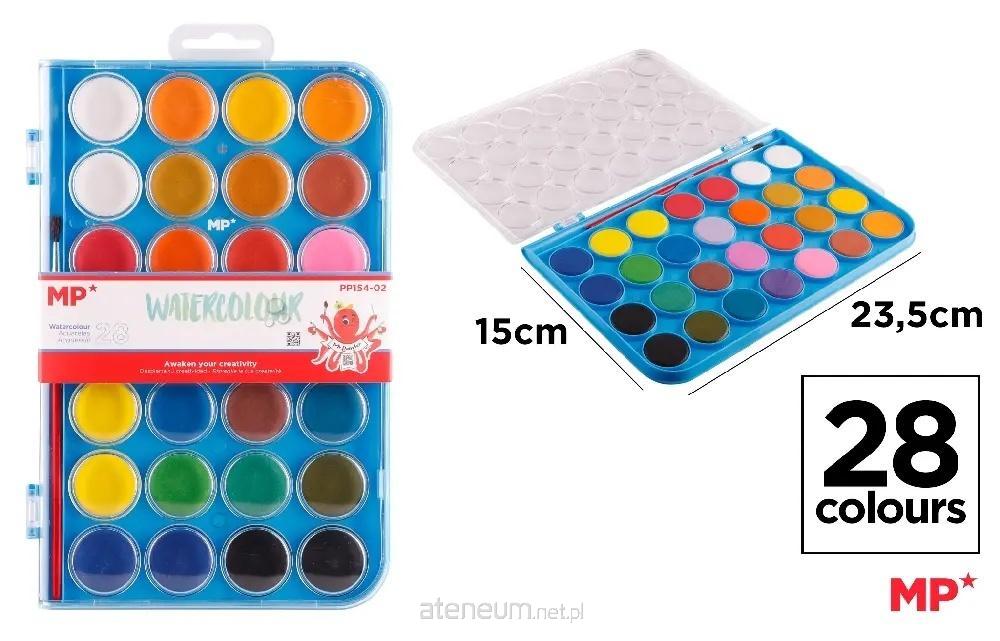 Farby akwarelowe z pędzelkiem 28 kolorów MP