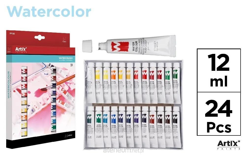 Zestaw farb akwarelowych 24 kolory 24x12ml/opak Artix