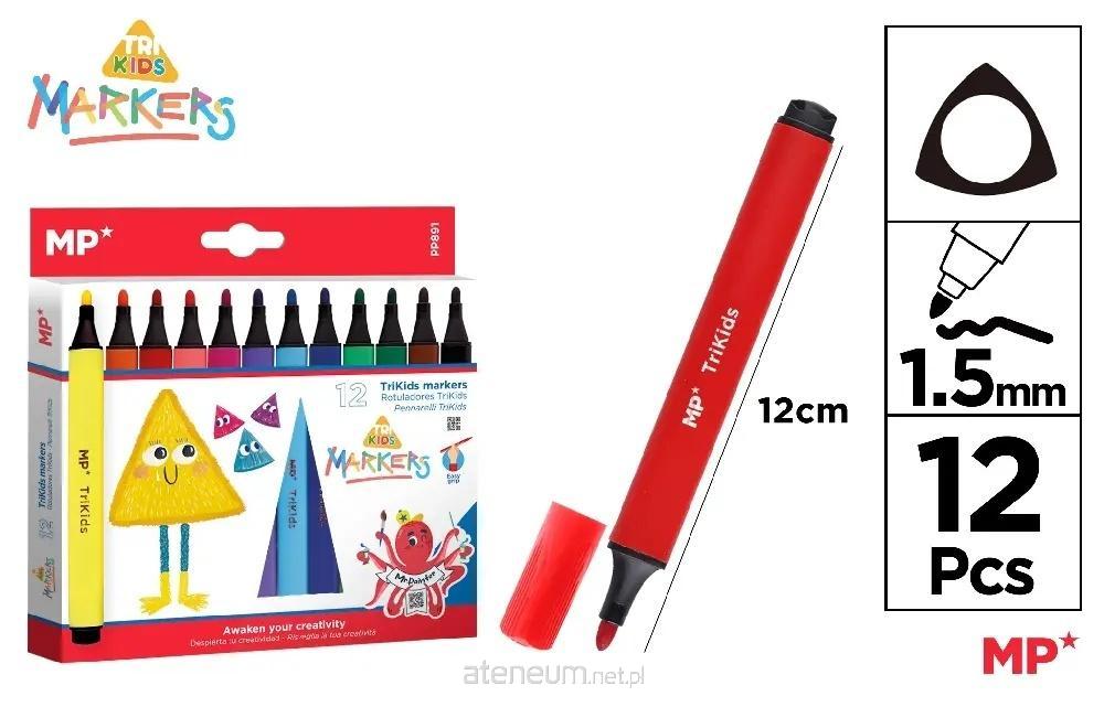 Flamastry szkolne trójkątne 12 kol. 12szt./opak MP