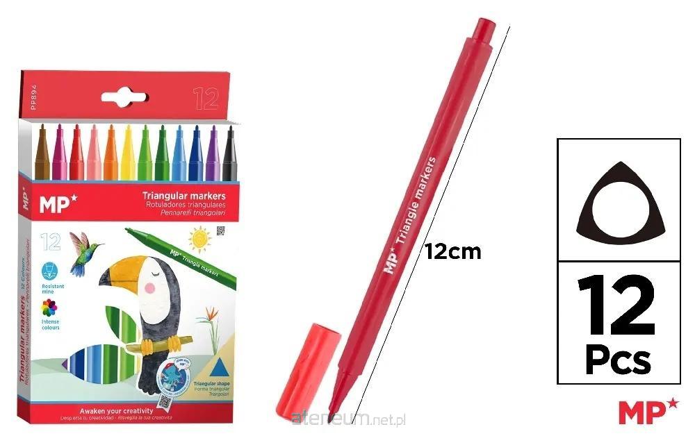 Flamastry szkolne trójkątne 12 kol. 12szt./opakowanie MP