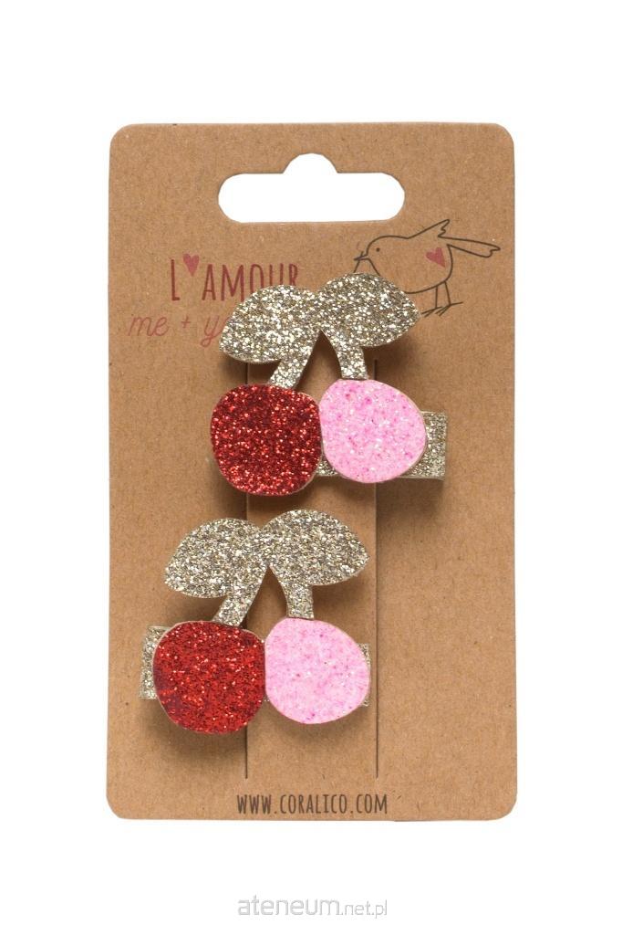Zestaw klipsów z czereśniami, złoto, czerwony i róż