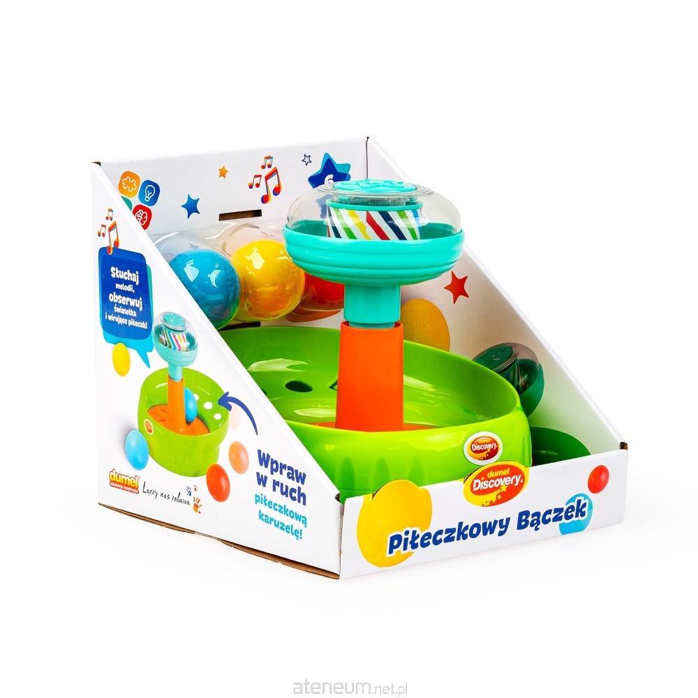 Weź w rączki bączek, dodaj do niego trzy piłeczki, dobry humor i wciśnij tłok - to właśnie przepis na muzyczną zabawę! Bączek wyposażony został w melodie i światełka, które to funkcje aktywuje wciśnięcie tłoka. W zestawie znajdziemy trzy piłeczki, a każda z nich ozdobiona jest innymi, wytłoczonymi kształtami: czerwona gwiazdkami, żółta listkami, a niebieska motylkami. Także szczyt tłoka zdobi kształt gwiazdki, a w jego przezroczystej kopule ukryło się mnóstwo kolorowych koralików, które uroczo grzechoczą przy wciskaniu tłoka lub poruszaniu zabawką.