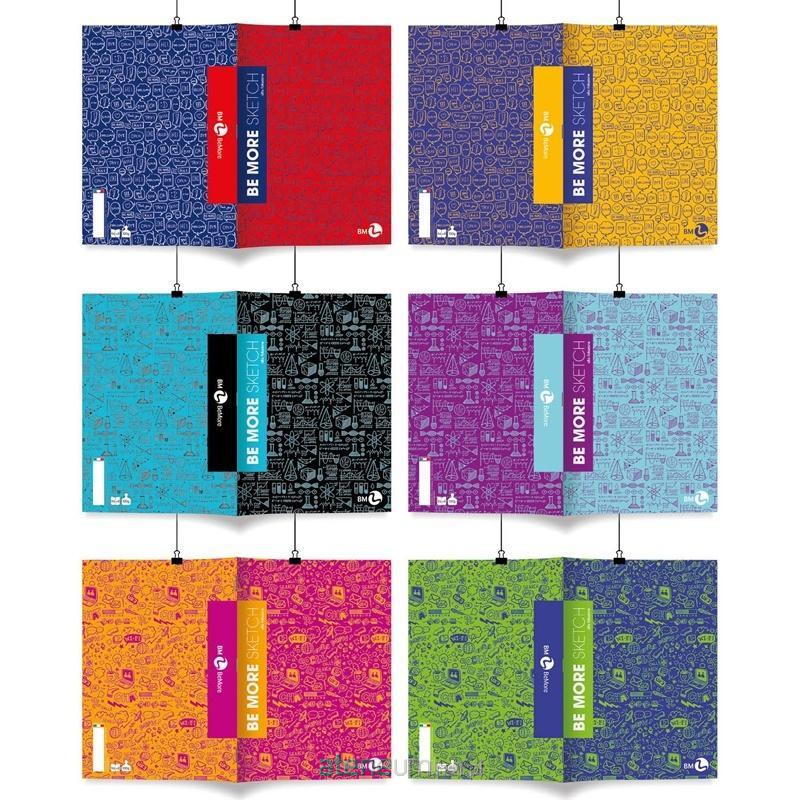 Kolekcja zeszytów Be More Sketch posiada okładki z napisami lub wzorami matematycznymi. Okładki pokryte są wybiórczo lakierem UV, co uwydatnia detale i nadaje głębi grafice. Zeszyty posiadają kartki o wysokiej gramaturze z marginesami.