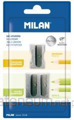 Temperówka okrągła podwójna z pojemniczkiem na strużyny. Wykonana w całości z tworzywa. Przezroczyste wieczko pomaga określić czas, w którym należy opróżnić pojemnik. Przeznaczona dla kredek i ołówków o średnicy 8 i 11 mm.