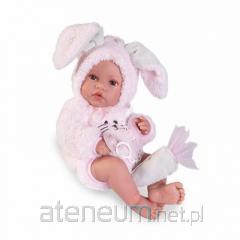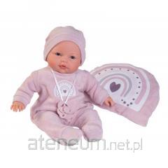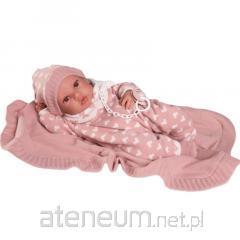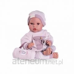 Lalka hiszpańska płacząca Bimba miś z kocykiem 37 cm Antonio Juan 14364 Bobasy interaktywne znanej na całym świecie marki Antonio Juan uatrakcyjniają zabawę i umożliwiają dziecku wcielanie się w rolę troskliwego rodzica. Po wyjęciu smoczka z ust, Bimba 14364 płacze i potrzebuje uwagi małej opiekunki. Z kolei umieszczenie lali w pozycji leżącej powoduje zamknięcie się powiek. Oprócz ślicznej, dopracowanej w każdym szczególe twarzyczki z brązowymi oczami opatrzonym długimi rzęsami, zachwyca oryginalnie zaprojektowany, ciepły ręcznie szyty strój, przypominający futerko misia. 37-centymetrowa lalka hiszpańska o wadze ok. 940 g posiada główkę i ruchome kończyny wykonane z wysokiej jakości miękkiego, przyjemnego w dotyku winylu. Dzięki miękkiemu brzuszkowi jest doskonała do przytulania. Została zaprojektowana dla dzieci w wieku od 3 lat. Czym wyróżnia się lalka hiszpańska Antonio Juan Bimba 14364? Realistycznie wyglądający, winylowy bobas z miękkim brzuszkiem posiada wyrzeźbione włoski oraz delikatnie malowane brwi, usta, paznokcie i fałdki. Wysokiej jakości piżamkę oraz wiązaną czapeczkę z łatwością można zdjąć. W komplecie znajduje się także specjalny smoczek magnetyczny na satynowej tasiemce oraz futrzany kocyk dwustronny. Płaczący bobas to atrakcyjny prezent dla miłośniczki lalek! Lalka hiszpańska renomowanej marki Antonio Juan posiada wszystkie wymagane certyfikaty bezpieczeństwa. Ręcznie wykonana w całości w Hiszpanii, zapakowana jest w biało-różowe, ozdobne pudełko z wieczkiem. Spełnia ono rolę opakowania prezentowego i może posłużyć jako łóżeczko dla bobasa.