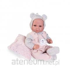 Lalka hiszpańska płacząca Beni z mufką 42 cm Antonio Juan 16383 Jeśli mała wielbicielka wyjątkowych zabawek marzy o hiszpańskiej lali przyjaciółce, idealnej do przytulania, przebierania i czesania, brunetka o imieniu Beni z pewnością wzbudzi zachwyt. Model 16383 z miękkim brzuszkiem, od renomowanego producenta Antonio Juan ma 42 cm wysokości i przypomina małą dziewczynkę. Po wyjęciu smoczka płacze i mówi: mama, papa. Stale otwarte, brązowe oczy o głębokim spojrzeniu opatrzone są długimi rzęsami i delikatnie namalowanymi brwiami. Lalka hiszpańska Antonio Juan Beni 16383 w modnym stroju Wykonana z wysokiej jakości, przyjemnego w dotyku winylu lalka hiszpańska Antonio Juan 16383 posiada materiałowy brzuszek wypełniony miękką wyściółką. Beni ubrana jest w oryginalny, szyty ręcznie strój, który można zdjąć: muślinowa pudrowa bluzeczka i krótkie spodenki ładnie prezentują się w komplecie z ciepłą czapeczką, pluszowym szaliczkiem, mufką i skarpetkami, zestaw uzupełnia specjalny smoczek magnetyczny na tasiemce. Atonio Juan Beni to unikalna lalka hiszpańska na prezent Lalka Beni 42 cm posiada wszystkie wymagane certyfikaty bezpieczeństwa. Jest przeznaczona dla dzieci od 3 roku życia. Wyprodukowana została w całości w Hiszpanii. Zapakowana w biało-różowe, ozdobne pudełko z wieczkiem, świetnie sprawdzi się jako oryginalny prezent dla wielbicielki wyjątkowych zabawek.