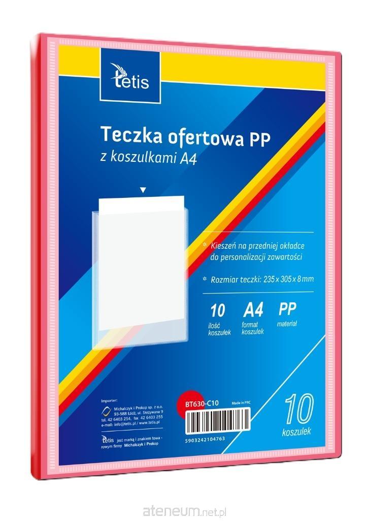 Teczka ofertowa PP z koszulkami. Posiada grzbiet i kieszeń opisową na przedniej okładce, format A4 Teczka posiada 13 przegród. Wymiary teczki: 330x245x35 mm, grubość tworzywa PP: 0,50 mm. Dostępna w pięciu kolorach (niebieski, czerwony, pomarańczowy, żółty, czarny). Opakowanie: folia 1 szt.