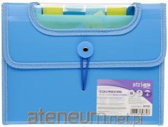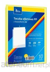 Teczka ofertowa PP z koszulkami. Posiada grzbiet i kieszeń opisową na przedniej okładce, format A4 Teczka posiada 13 przegród. Wymiary teczki: 330x245x35 mm, grubość tworzywa PP: 0,50 mm. Dostępna w pięciu kolorach (niebieski, czerwony, pomarańczowy, żółty, czarny). Opakowanie: folia 1 szt.