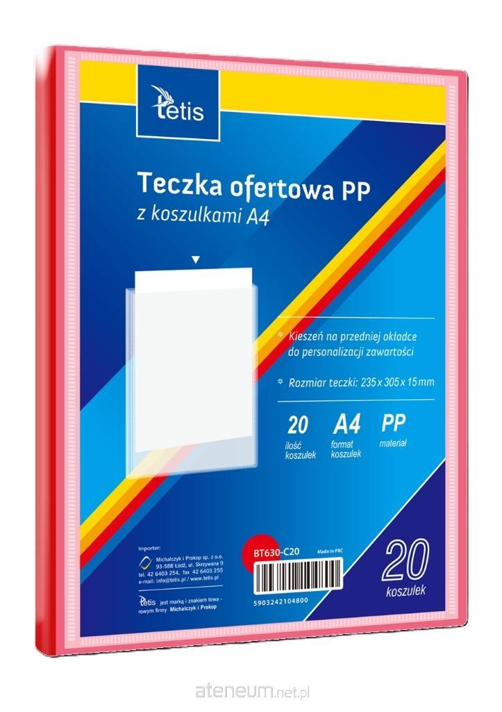 Teczka ofertowa PP z koszulkami. Posiada grzbiet i kieszeń opisową na przedniej okładce, format A4 Teczka posiada 13 przegród. Wymiary teczki: 330x245x35 mm, grubość tworzywa PP: 0,50 mm. Dostępna w pięciu kolorach (niebieski, czerwony, pomarańczowy, żółty, czarny). Opakowanie: folia 1 szt.