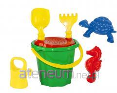 82260 Minions piaskownica z kompletem do piasku Piaskownica z kompletem do piasku z bohaterami bajki Minionki to doskonały zestaw, który zachwyci każde dziecko i pozwoli mu na rozwijanie kreatywności podczas zabawy na świeżym powietrzu. Piaskownica w kolorze turkusowym ma wbudowany młynek do przelewania wody i piasku. Komplet zawiera wiaderko, grabki, łopatkę i foremkę, które umożliwiają dzieciom tworzenie piaskowych budowli. Wykonane z bezpiecznego tworzywa sztucznego, odpornego na wodę i słońce, zestaw zapewnia długotrwałą zabawę. Idealna do ogrodu, na plażę, czy do parku. Piaskownica z kompletem do piasku z bohaterami bajki Minionki to wyjątkowa zabawka, która przenosi dzieci w świat ich ulubionych, żółtych postaci, znanych z poczucia humoru i niekończących się przygód. Minionki, uwielbiane przez dzieci na całym świecie, to niezwykle zabawne i urocze stworki, które swoją kreatywnością i zapałem do działania inspirują najmłodszych. Zestaw zdobią motywy z ich przygód, które rozbudzają wyobraźnię i zachęcają do wymyślania własnych historii. Piaskownica jest kompaktowa i ma modny turkusowy kolor, dzięki czemu doskonale pasuje do ogrodu, na taras czy plażę. Jest wyposażona w funkcjonalny młynek, zamontowany bezpośrednio na piaskownicy, który umożliwia przelewanie wody i piasku, co zapewnia jeszcze więcej zabawy. Komplet letni składa się z wiaderka o pojemności 1 litra, które zdobi kolorowa grafika przedstawiająca bohaterów Minionki, oraz akcesoriów takich jak grabki, łopatka i foremka. Dzięki tym akcesoriom maluchy mogą tworzyć piaskowe budowle, przesiewać piasek, a także rozwijać zdolności manualne i motoryczne. Wszystkie elementy zestawu zostały wykonane z bezpiecznego, certyfikowanego tworzywa sztucznego, które jest odporne na działanie wody, słońca oraz innych warunków atmosferycznych. Dzięki temu zabawki pozostaną jak nowe przez wiele sezonów, a ich trwałość zapewni długie godziny zabawy. Grafika wykonana metodą IML jest wytrzymała, co pozwala na zachowanie jej intensywnych kolorów nawet po wielu użyciach. Piaskownica z kompletem do piasku z bohaterami bajki Minionki to doskonała zabawa, która nie tylko zapewnia dzieciom radość, ale także wspomaga ich rozwój w sposób kreatywny i edukacyjny. Zabawka jest odpowiednia do zabawy w ogrodzie, na plaży, w parku, czy też w domu, dając maluchom nieograniczone możliwości twórczej zabawy na świeżym powietrzu. zestaw składa się z piaskownicy i dodatkowych akcesoriów: małe wiaderko 1 l z grafiką Minionki, młynek z mocowaniem do rantu piaskownicy, łopatka, grabki, foremka wymiary piaskownicy to 35,5 x 14 x 35,5 cm Piaskownica jest kompaktowa i ma modny turkusowy kolor wykonana z bezpiecznego tworzywa najwyższej jakości, trwałego i wytrzymałego na warunki atmosferyczne zabawa piaskownicą z akcesoriami umożliwia maluchom twórczą zabawę, a także rozwijać zdolności manualne i motoryczne. odpowiednia dla dzieci 1+