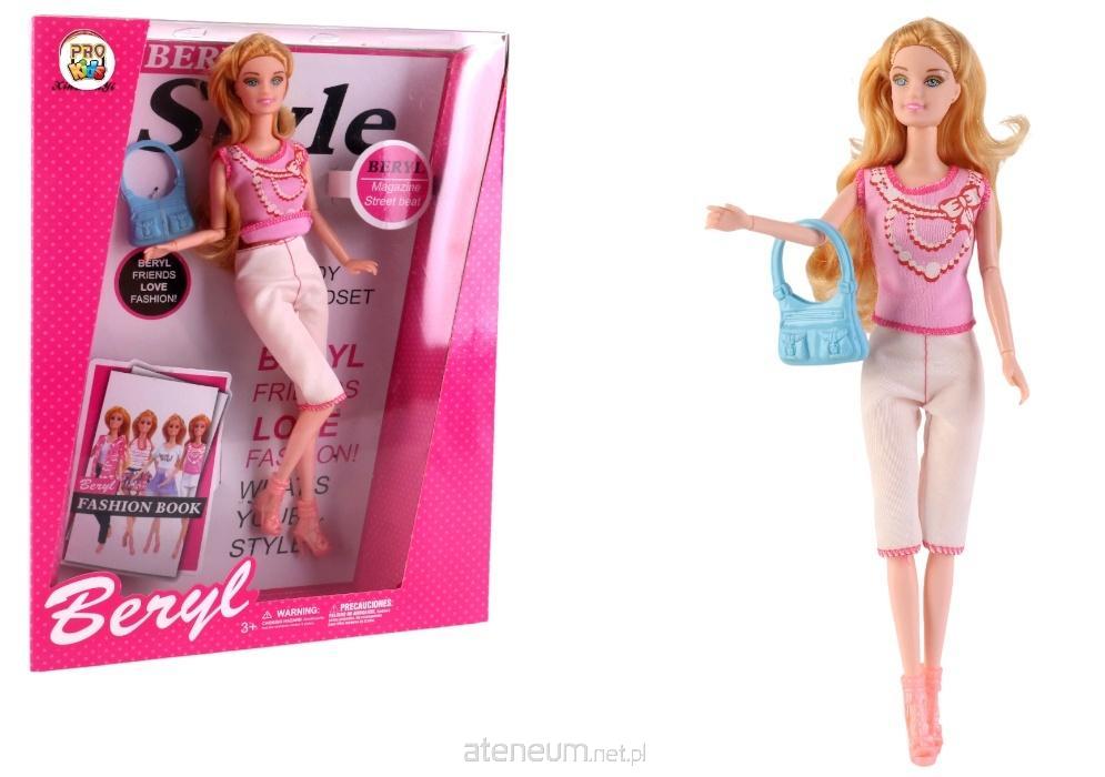 Lalka Beryl Style to stylowa towarzyszka zabawy, stworzona dla każdej małej miłośniczki mody. Jej długie, blond włosy można czesać i układać, a elegancki strój sprawia, że wygląda jak prawdziwa ikona stylu. Beryl ma na sobie modny zestaw składający się z różowego topu bez rękawów, ozdobionego nadrukiem imitującym naszyjnik, oraz białych spodni capri z różowymi detalami. Stylizację uzupełnia błękitna torebka, idealna na każdą okazję, oraz różowe buty na obcasie, dodające jej szyku i elegancji.