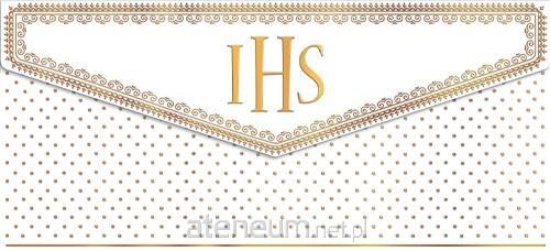 Ozdobna koperta na pieniądze, złocona i tłoczona. W zestawie wkładka z życzeniami oraz koperta ochronna.