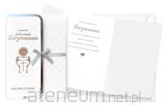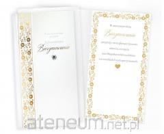 Karnet w formacie A5, złocony i tłoczony, teksy życzeń w środku. Wydrukowany na wysokiej jakości papierze. W zestawie koperta.