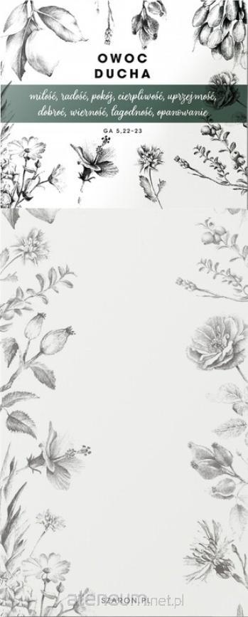 Notes ozdobiony jest delikatnym biało-czarnym wzorem przedstawiającym owoce i rośliny, co nadaje mu elegancki i stylowy wygląd. Znajduje się na nim werset z Listu do Galacjan 5:22-23: Owocem zaś Ducha jest: miłość, radość, pokój, cierpliwość, uprzejmość, dobroć, wierność, łagodność, opanowanie.