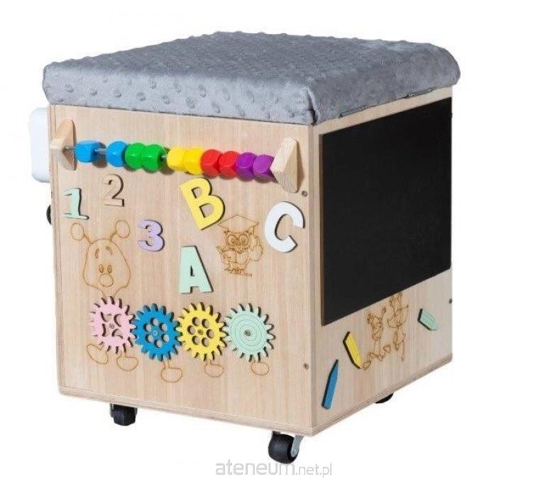 Pufa wyposażona w skrętne kółka. Podnoszone siedzisko z miękką gąbką, obite polarem Minky
