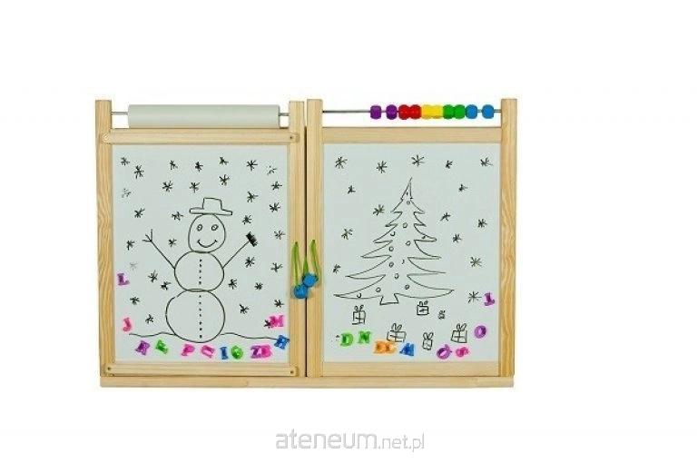 Wisząca dwustronna, zamykana naturalna tablica z podstawą pod kredę. Wyposażona w gąbkę oraz kredę. Zestaw zawiera także marker suchościeralny. Zawieszki oraz wkręty do samodzielnego powieszenia dołączone do tablicy.