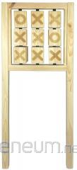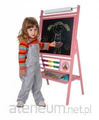 Wisząca dwustronna, zamykana, drewniana w kolorze seledynowym, tablica z podstawą pod kredę. Wyposażona w gąbkę oraz kredę. Zestaw zawiera także marker suchościeralny. Zawieszki oraz wkręty do samodzielnego powieszenia dołączone do tablicy.