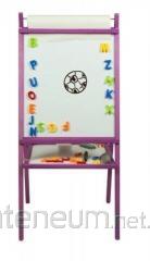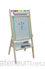 Naturalna tablica magnetyczno-suchościeralno-kredowa dla małych artystów.Wyposażona dodatkowo w: 4 szt kubków na farbę, po stronie magnetycznej klips na kolorowanki, kredę, gąbkę, marker suchościeralny. Załączona pod klips kolorowanka gratis !!