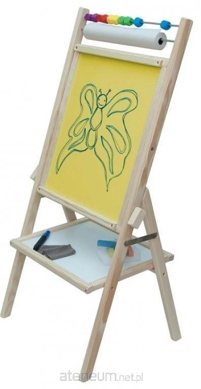 Obrotowa, suchościeralno-kredowa tablica z rolką papieru i liczydłem. Kolory tablicy: na kredę czarny, na marker żółty. Oprócz liczydła i papieru wyposażona w gąbkę i kredę. Marker w zestawie.