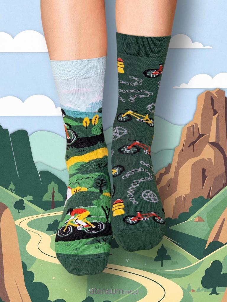 Co łączy rowerzystów z podróżnikami? Pasja odkrywania nowych miejsc i chęć przekraczania własnych granic. A co może sprawić, że każda wyprawa będzie jeszcze bardziej wyjątkowa? Kolorowe skarpetki ROWER! To prawdziwa gratka dla prawdziwych pasjonatów dwóch kółek! Chcesz dodać trochę koloru swoim codziennym przejażdżkom? Nasze skarpetki są stworzone właśnie dla Ciebie! Zapewniają komfort także podczas długich tras. Żywe kolory i oryginalny projekt sprawią, że wyróżnisz się z tłumu kolarzy nawet w lesie. To idealny prezent dla każdego rowerzysty! Dla rowerzysty Skład: 80% najwyższej jakości bawełna czesana, 17% poliamid (dodaje wytrzymałości), 3% elastan (skarpetka lepiej dopasowuje się do stopy) Nieuciskający ściągacz i komfortowy płaski szew na palcach Wyprodukowano w Polsce Prać zawsze na lewej stronie w temperaturze maks. 40C, nie prasować.