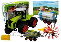 TRAKTOR ROLNICZY Z CYSTERNĄ I ZGRABIARKĄ Traktor z cysterną i zgrabiarką to idealna propozycja dla dzieci, które pasjonują się rolnictwem i uwielbiają odgrywać sceny z życia na farmie. Model ten wiernie odwzorowuje wygląd prawdziwego ciągnika rolniczego, a dołączone maszyny rolnicze umożliwiają realistyczne naśladowanie pracy na polu. Cysterna służy do przewozu płynów i nawozów, natomiast zgrabiarka pomaga w zbieraniu siana i przygotowaniu paszy dla zwierząt. Dzięki ruchomym elementom, takim jak obracające się grabie i detale cysterny, dziecko może odtwarzać różne etapy pracy w gospodarstwie rolnym. Solidna konstrukcja oraz duże, terenowe koła sprawiają, że pojazd doskonale radzi sobie na różnych nawierzchniach, co pozwala na zabawę zarówno w domu, jak i na świeżym powietrzu. Traktor z przyczepą rozwija kreatywność, zdolności manualne oraz koordynację ruchową, zachęcając dzieci do samodzielnej zabawy i poznawania zasad funkcjonowania nowoczesnego rolnictwa. To doskonały pomysł na prezent dla małych fanów maszyn rolniczych, którzy chcą poczuć się jak prawdziwi rolnicy. SPECYFIKACJA: Materiał: Wysokiej jakości plastik Kolor: Zielony traktor, zielona cysterna, czerwona zgrabiarka Funkcje: Ruchome elementy cysterny i zgrabiarki, możliwość odczepiania maszyn Wymiary zestawu: 52 cm x 11 cm x 9 cm Wymiary opakowania: 59 cm x 13 cm x 11 cm ZAWARTOŚĆ ZESTAWU: Traktor rolniczy Cysterna do transportu płynów Zgrabiarka do siana Oryginalne opakowanie