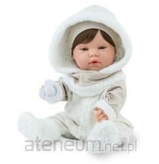 Lalka hiszpańska Betty z kocykiem Marina & Pau 372 Niewielki, 35 cm, uroczy bobas w ślicznej różowej polarowej piżamce i opasce to wyjątkowa wersja popularnego modelu Betty, zaprojektowanego i ręcznie wykonanego w Hiszpanii w firmie Marina & Pau. W komplecie znajduje się ciepły biały, miękki kocyk przypominający pluszowego misia, zdobionego różową kokardą. Urzeka słodki wyraz twarzy, wyrzeźbione na główce włoski niemowlęce oraz jasnoniebieskie, ręcznie malowane otwarte oczy. Podkreślone rysy twarzy, wyrzeźbione linie papilarne, dołeczki na piąstkach czy fałdki pod kolanami sprawiają, że bobas wygląda jak żywy. Dziewczynka została wykonana z gładkiego, przyjemnego w dotyku, bezpiecznego winylu. Ma zaznaczoną płeć. Proponujemy ją dla dzieci w wieku od 3 lat. Wspaniale sprawdza się także podczas zabawy w kąpieli. Nie posiada włosów ani rzęs, brwi są lekko zaznaczone. Ruchome rączki, nóżki oraz główka sprawiają, że można ułożyć lalę w różnych pozycjach. Betty siedzi samodzielnie. Marina & Pau 372 - oryginalna lalka hiszpańska na prezent dla dziecka Wyjątkowa winylowa lalka hiszpańska zapakowana jest w pięknie prezentujący się otwarty firmowy kartonik z logo marki w postaci mniszka lekarskiego. Zabawka posiada wszystkie wymagane certyfikaty bezpieczeństwa CE. Świetnie nadaje się na upominek.