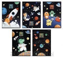 Dodatkowo, środek zeszytu został zadrukowany kratką, co ułatwia organizację notatek oraz czytelność zapisanych treści.