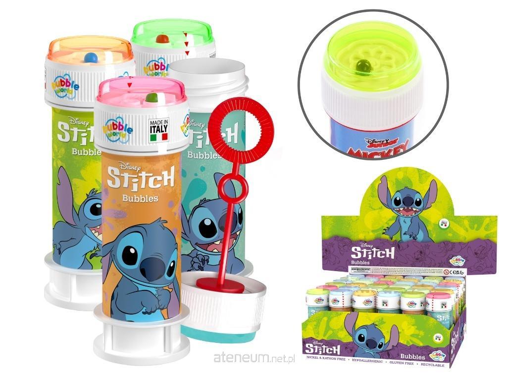 Opis: bańki mydlane z postaciami Stitch'a, na każdej nakrętce znajduje się gra - labirynt z piłeczką, ilość płynu w opakowaniu: 60 ml, wym. bańki: 11,5 x 35 cm., 3+
