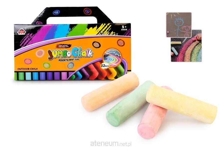 W zestawie: 32 kredy chodnikowe w 6 kolorach, długość 10,5 cm, średnica 2,5 cm, wym. opakowania: 19 x 9,5 x 10 cm, 3+