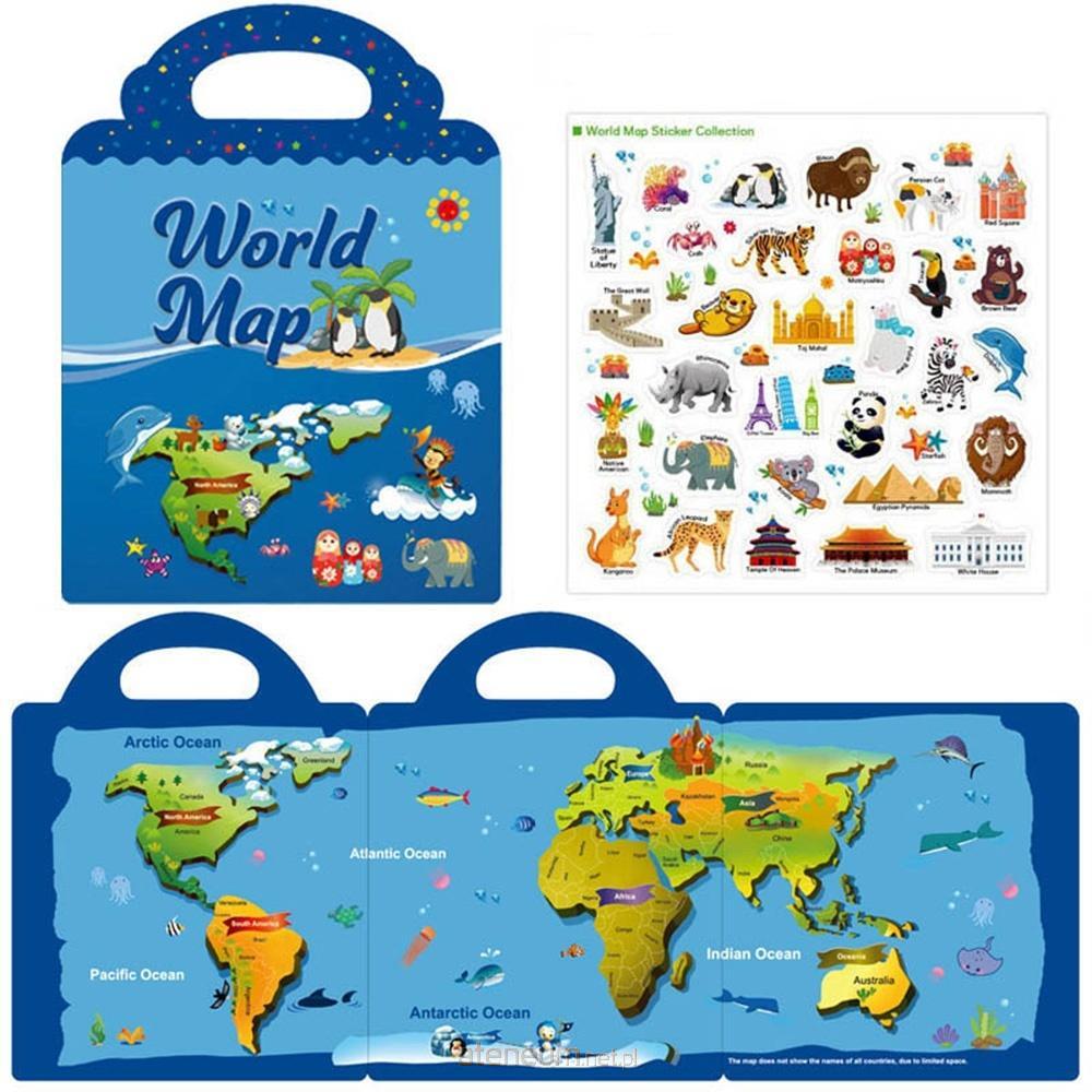 Książeczka z naklejkami wielorazowego użytku. W zestawie rozkładana książeczka (69x30 cm) oraz 31 naklejek (zwierzęta i zabytki świata). Wymiary opakowania: 23 x 1 x 30 cm Wiek 3+